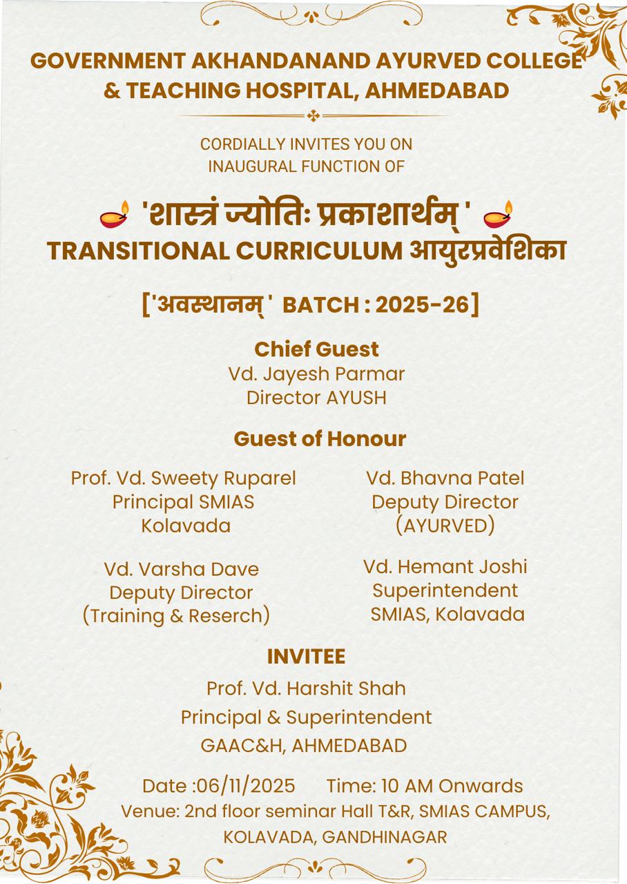Government Akhandanand Ayurveda College is a premier College of the state which is located in center of the city providing quality Ayurvedic Education and Healthcare.