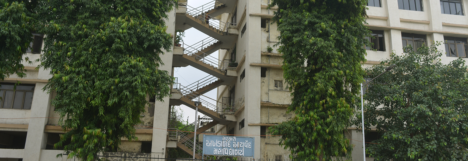 Government Akhandanand Ayurveda Mahavidhyalay is one of the oldest institute situated in the heart of heritage city Ahmedabad. This institute was established with blessings of Bhikshu Akhandanand and has privilege to have holy touch with world famous Bhadrakali Mata temple. This institute have prestigious history to produce greatest Vaidyas for society. Presently institute have under graduation and post graduation teaching facility in which more than 400 students studying from various part of Gujarat as well as India. As far as AYUSH health services & education sector concern, we stood alone on top as compare to any Government Ayurveda hospital & college of gujarat. We provide free of cost Ayurveda health care services to the society. Our aim and efforts will be always to set high standard benchmark at each and every level of Ayurveda Education, Resarch and Health care services.
